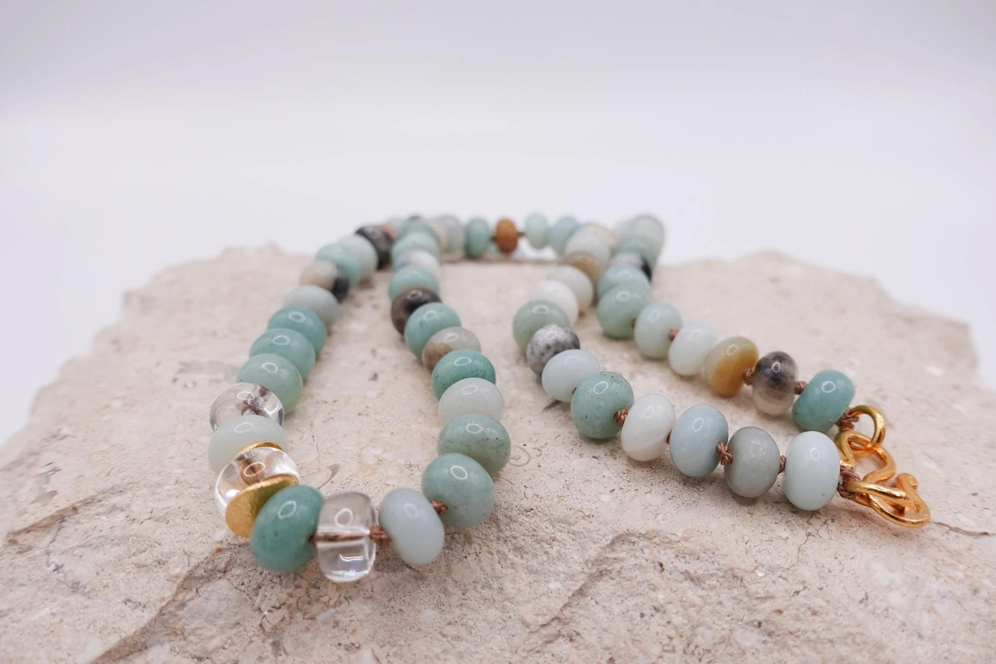 Alaria | Natural Amazonite and Gold Vermeil Beaded Layering Necklace | Aqua Series
